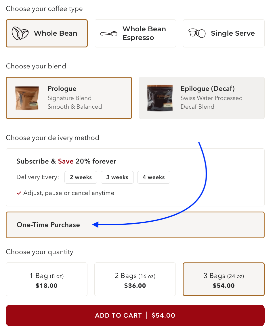 Can I order without subscribing?Updated 9 days agoAbsolutely! Simply select the One-Time Purchase option when making your order. Was this article helpful? YesNo